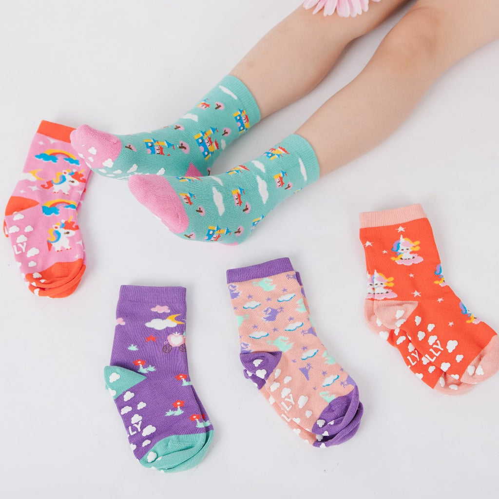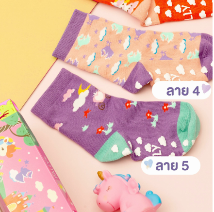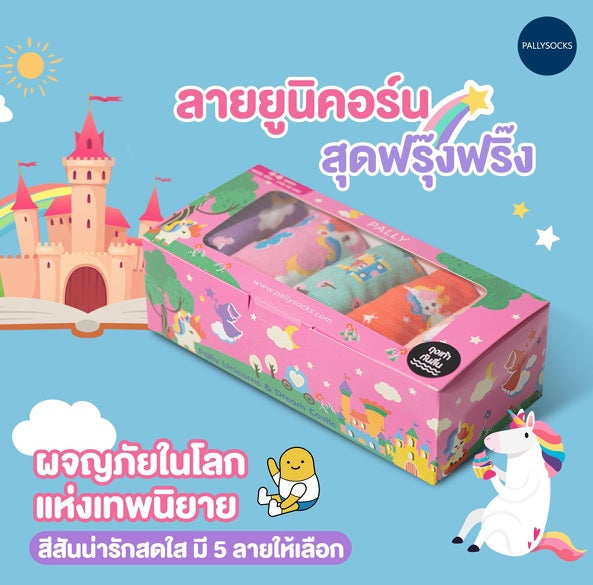 Pally BOX SET 5 คู่ ถุงเท้าแฟชั่นเด็กหญิง ปลายเท้าไร้ตะเข็บ UNICORNS&DREAM CASTLE Limited Collection